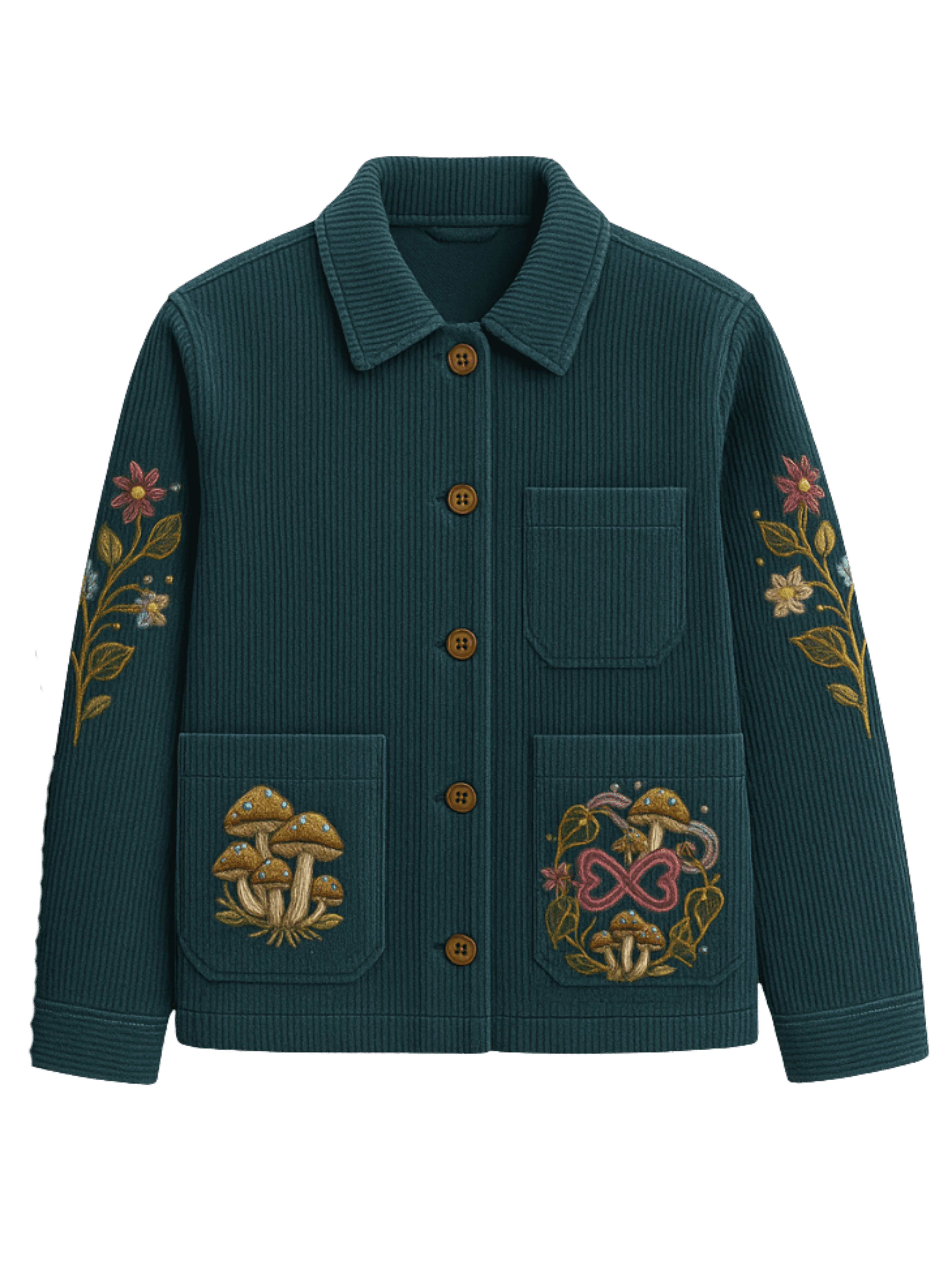 You imagined a jacket that feels expressive and full of character. This piece brings together texture, whimsy, and wearable art.