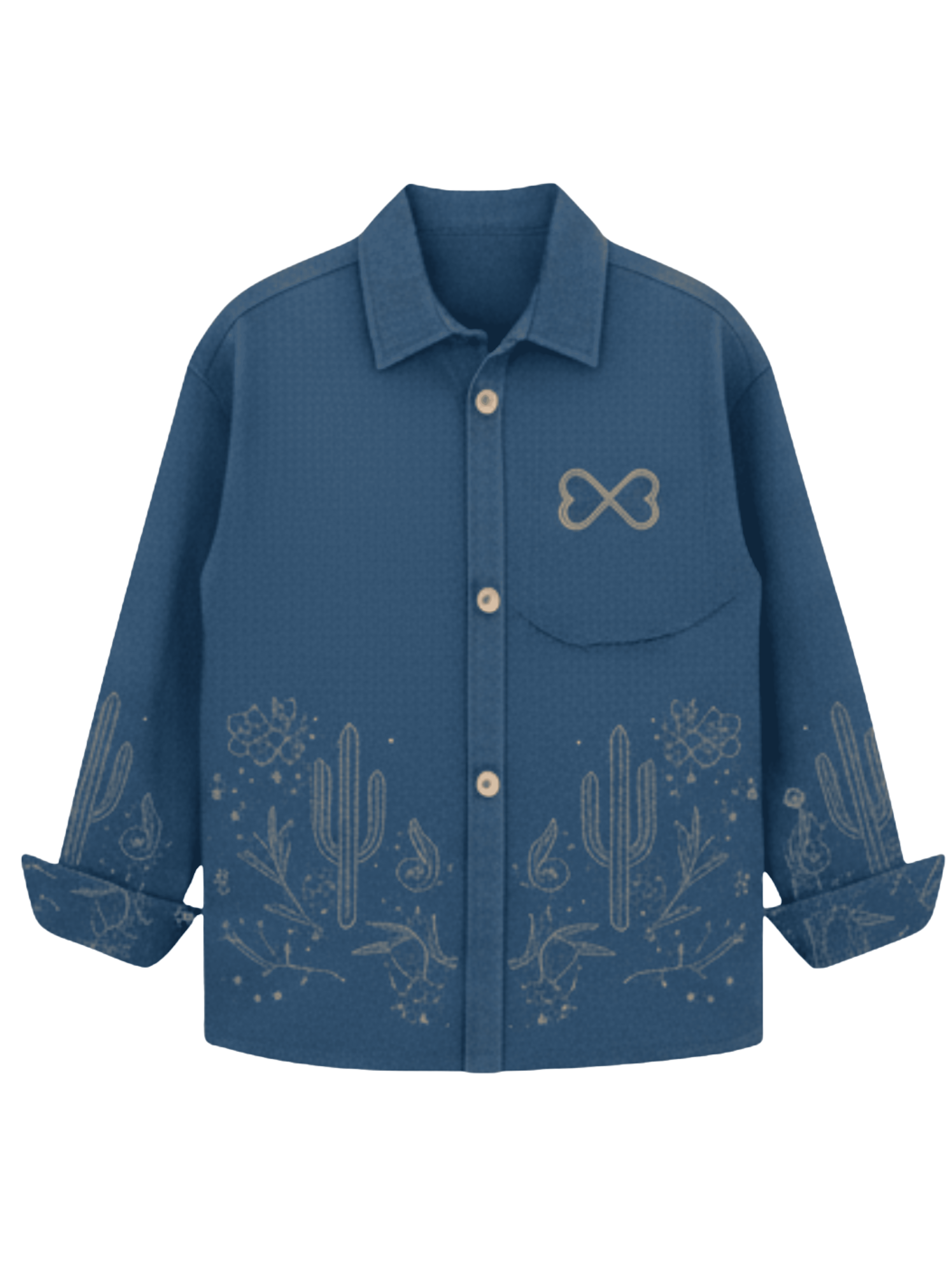 A richly toned shacket that carries hand-worked charm and everyday ease. It becomes a companion—steady, expressive, and deeply yours.