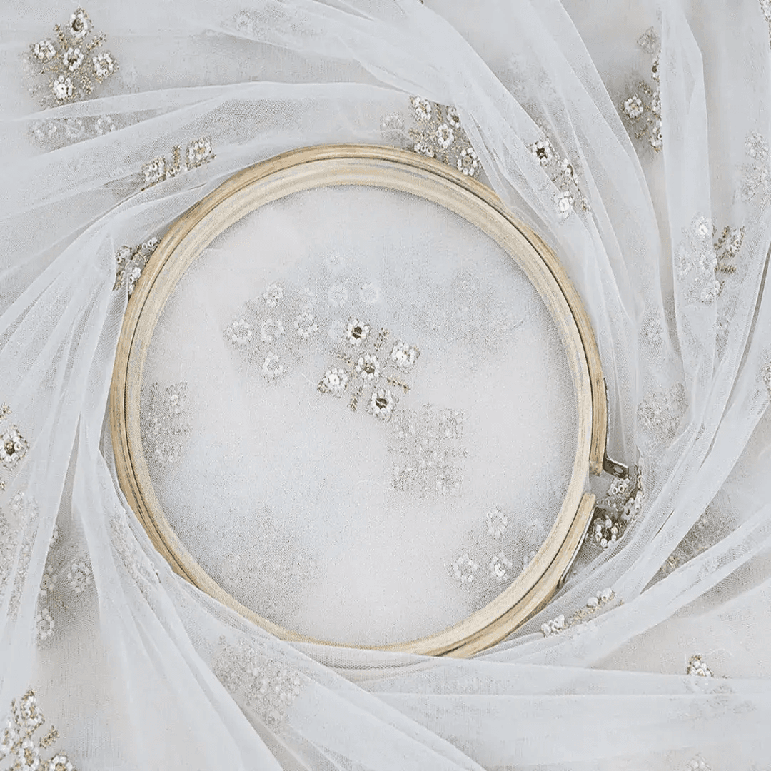 Skilled hands bring together silk, zari, and beads with precision, each motif built patiently, stitch by stitch.
