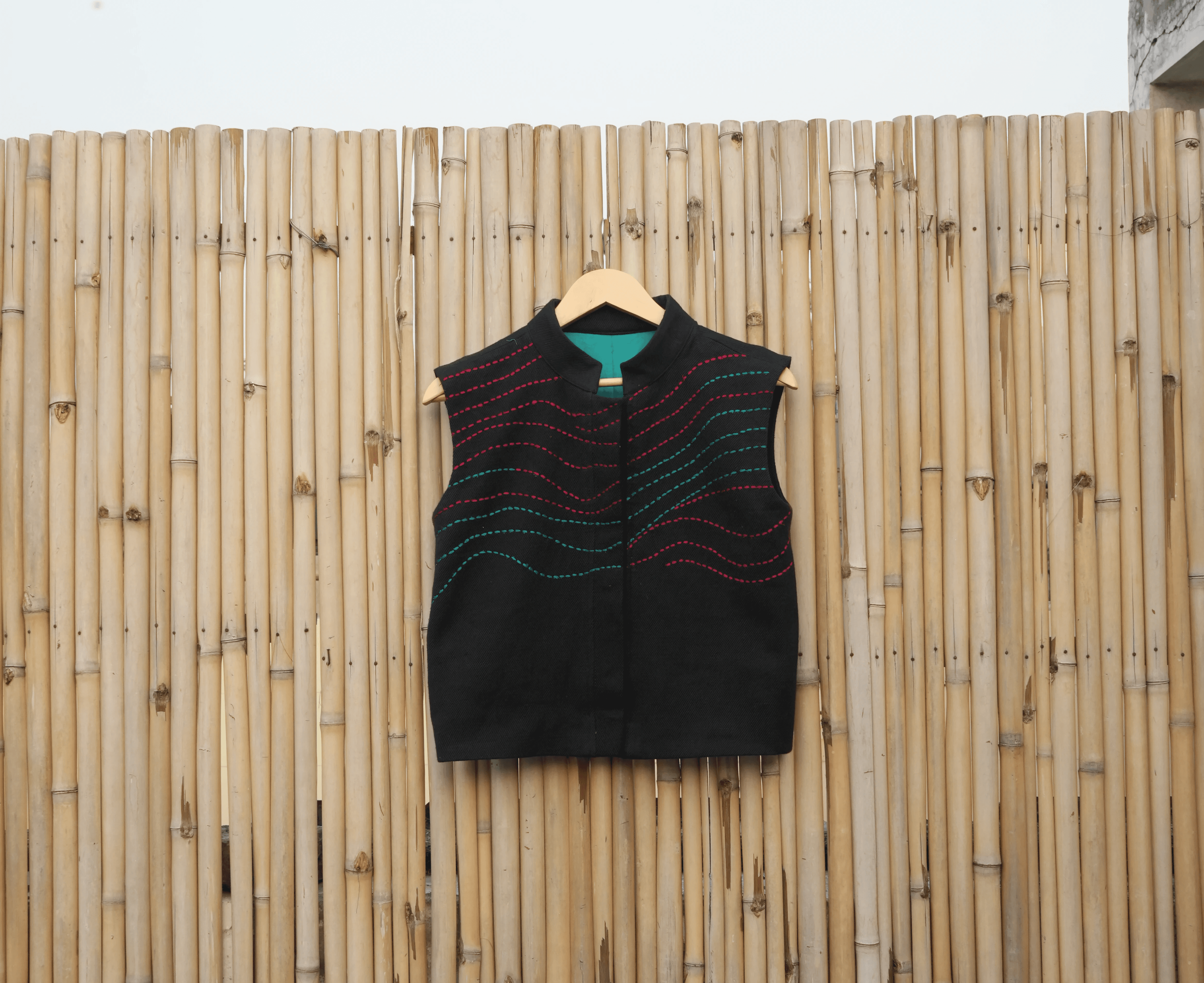 The finished vest feels alive—simple at first glance, layered in meaning up close. It stands as a wearable reminder that growth often happens quietly, before it blooms.