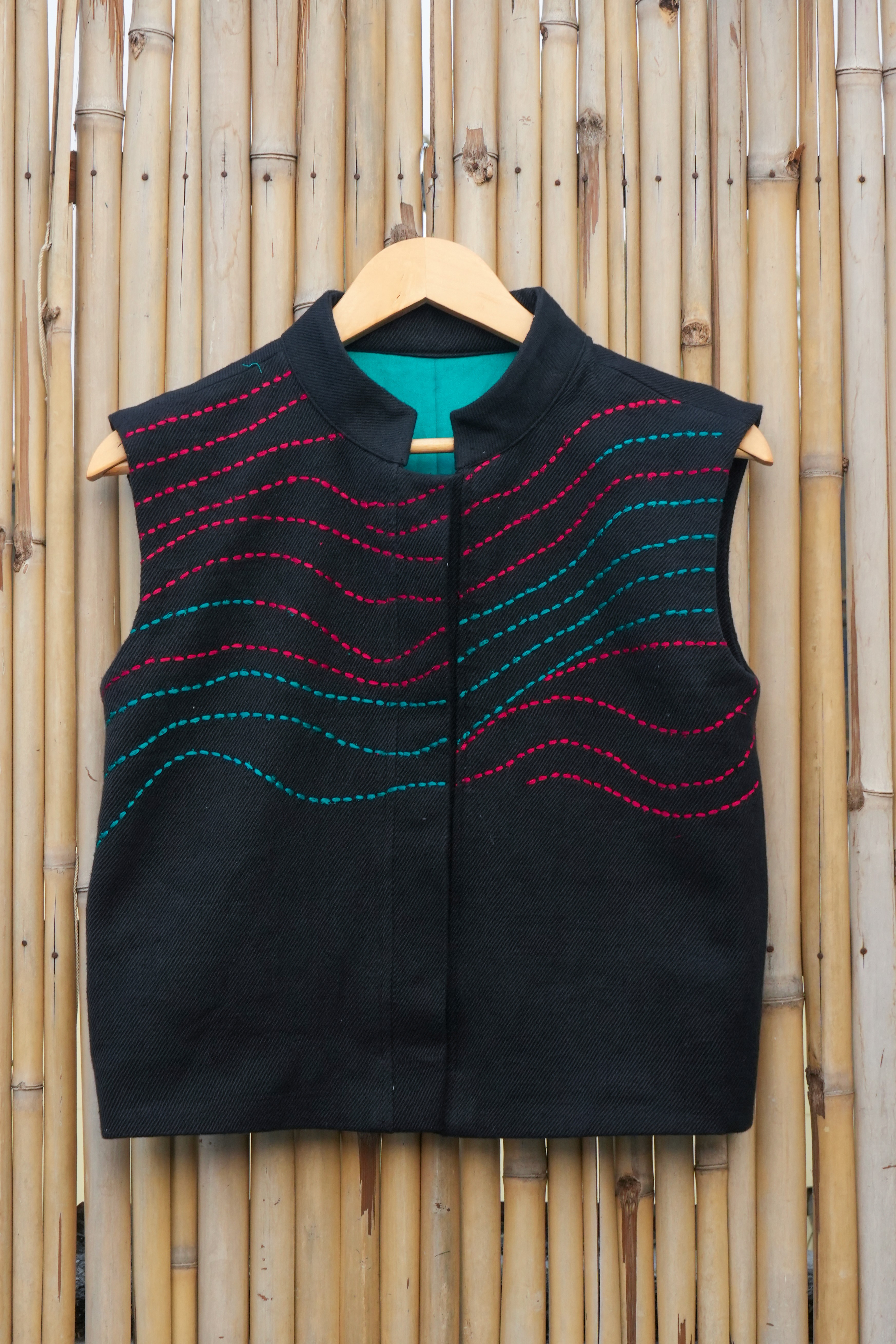 This vest is made for thoughtful days and meaningful moments—art walks, creative gatherings, or reflective travel. It layers easily, becoming part of both everyday rituals and special occasions.