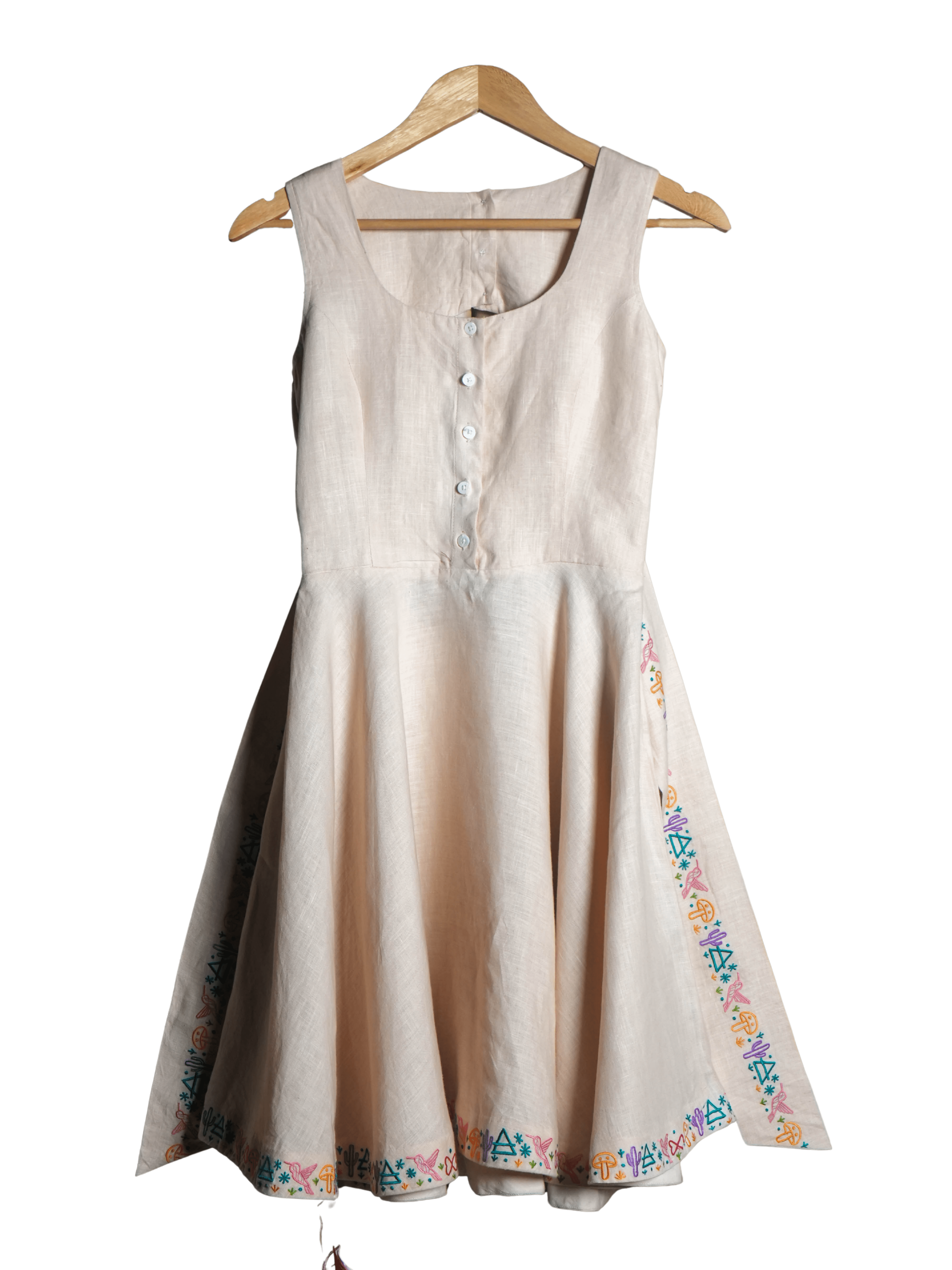 Artisans worked with gentle hands, weaving the cotton and stitching color into its borders. Their care gave the dress its soft rhythm.