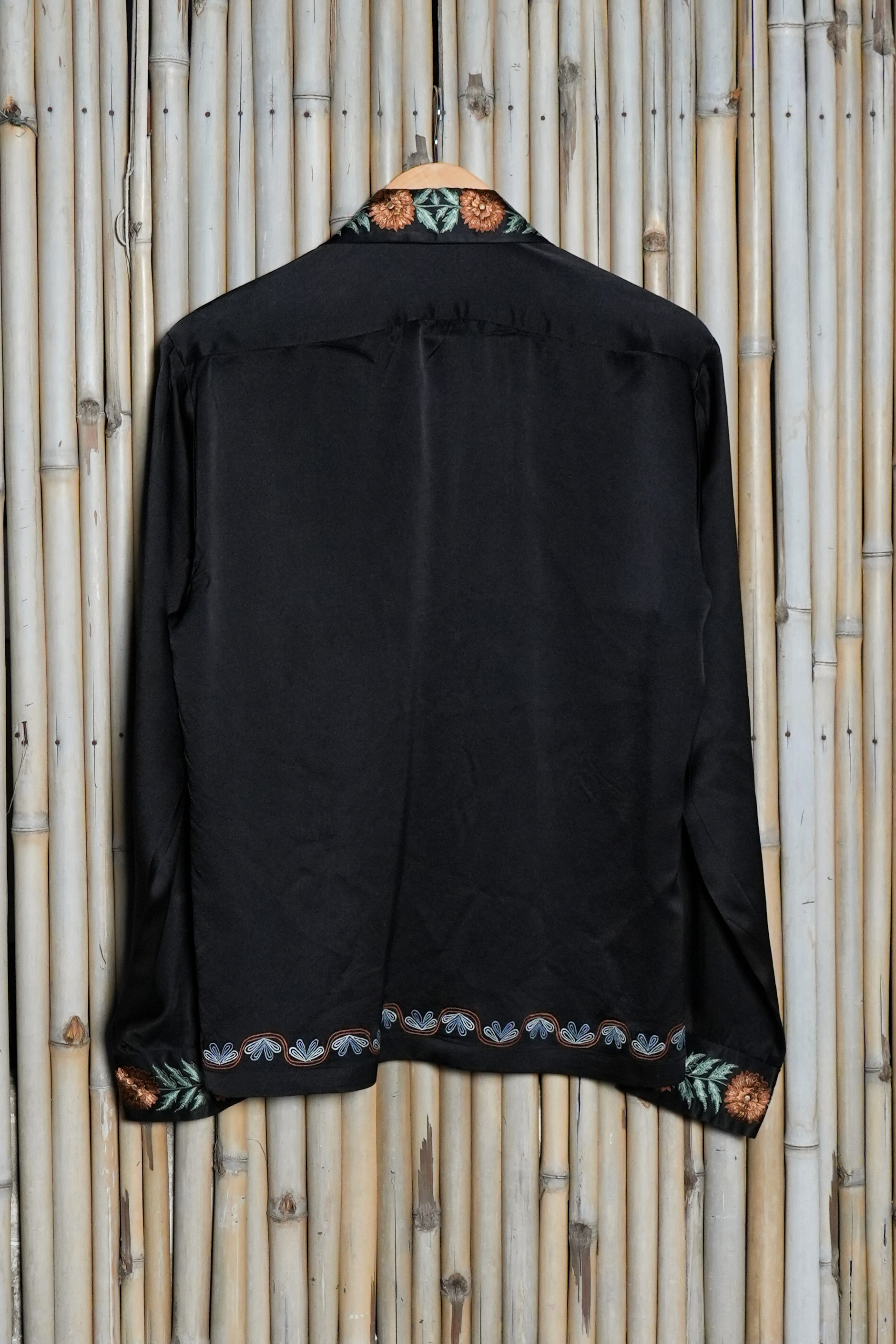 The silk is carefully handled and embroidered with control and clarity, balancing softness with strength.