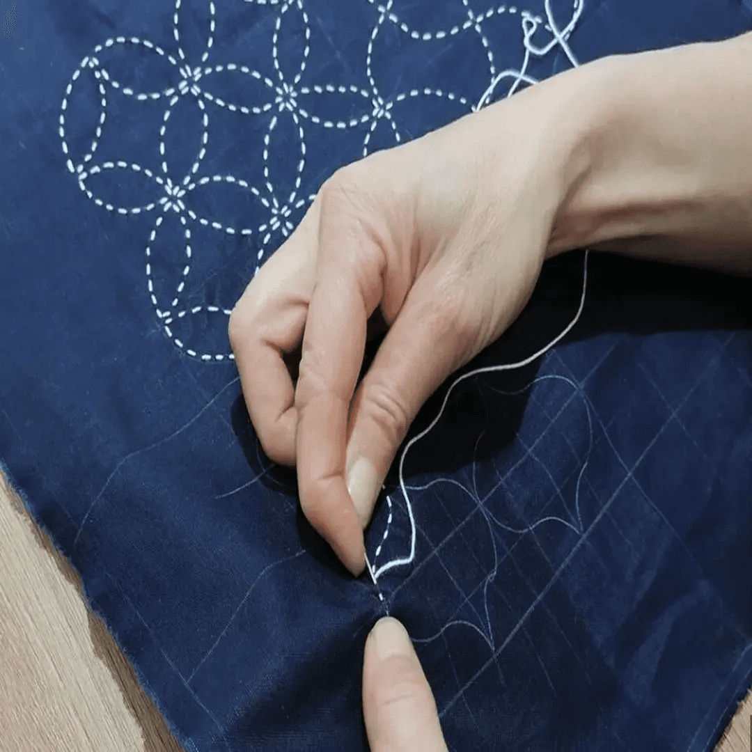 Each stitch is placed by hand, building patterns slowly and intentionally, honouring traditional techniques.