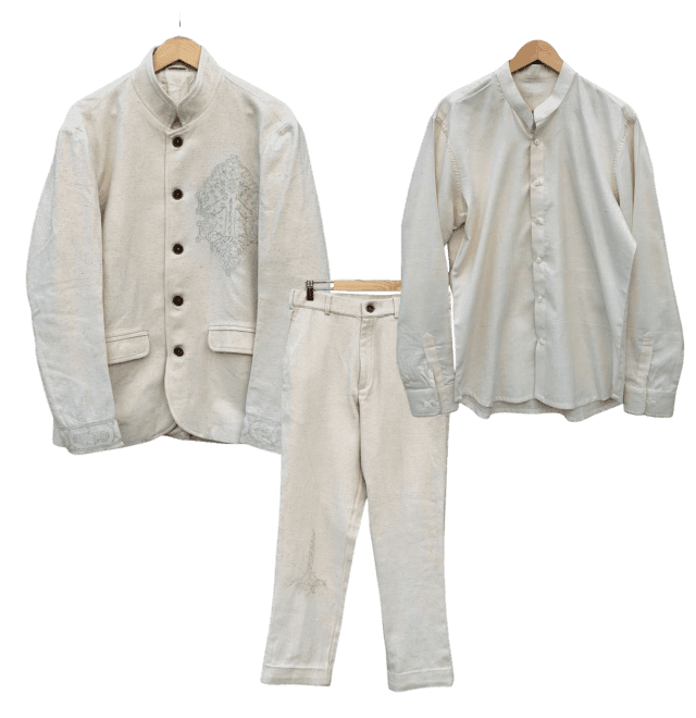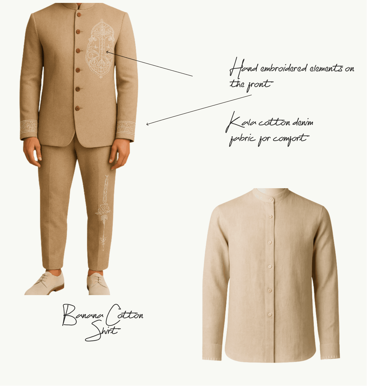 Todd’s bandhgala stands as a poetic companion for his backyard wedding—a natural, handwoven, hand-embroidered ensemble rooted in intention. It holds the softness of the moment, the strength of commitment, and the artistry of many hands. A ceremonial piece made not just for a day, but for a memory that will live far beyond it.