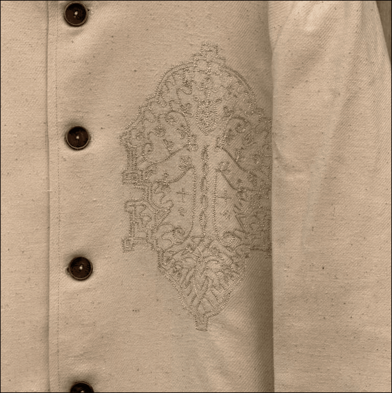 Working with Todd’s vision, the artisans shaped proportions, placement, and palette to create harmony between the garment and the setting. They refined the embroidery to echo the gentle geometry of garden vines and classic motifs, ensuring the piece felt both modern and timeless.