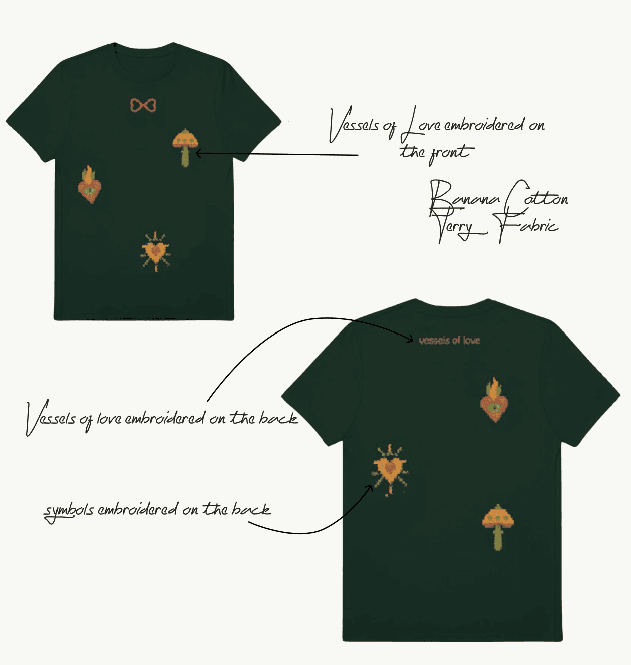 The Vessels of Love T-shirt becomes a gentle companion—simple, soulful, and quietly expressive. When Marina wears it, it carries her symbols close, turning everyday comfort into a small act of love.